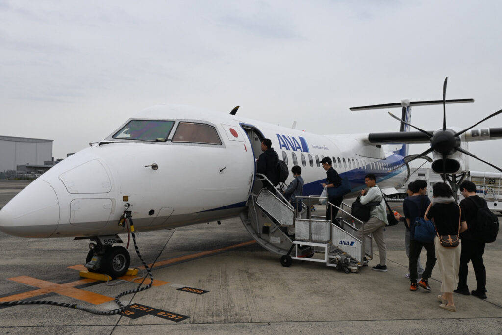 初めて飛行機に乗るOBさんからは「ジェットコースターだね」とワクワクする言葉が飛び出したり期待を膨らませて飛行機に搭乗です。