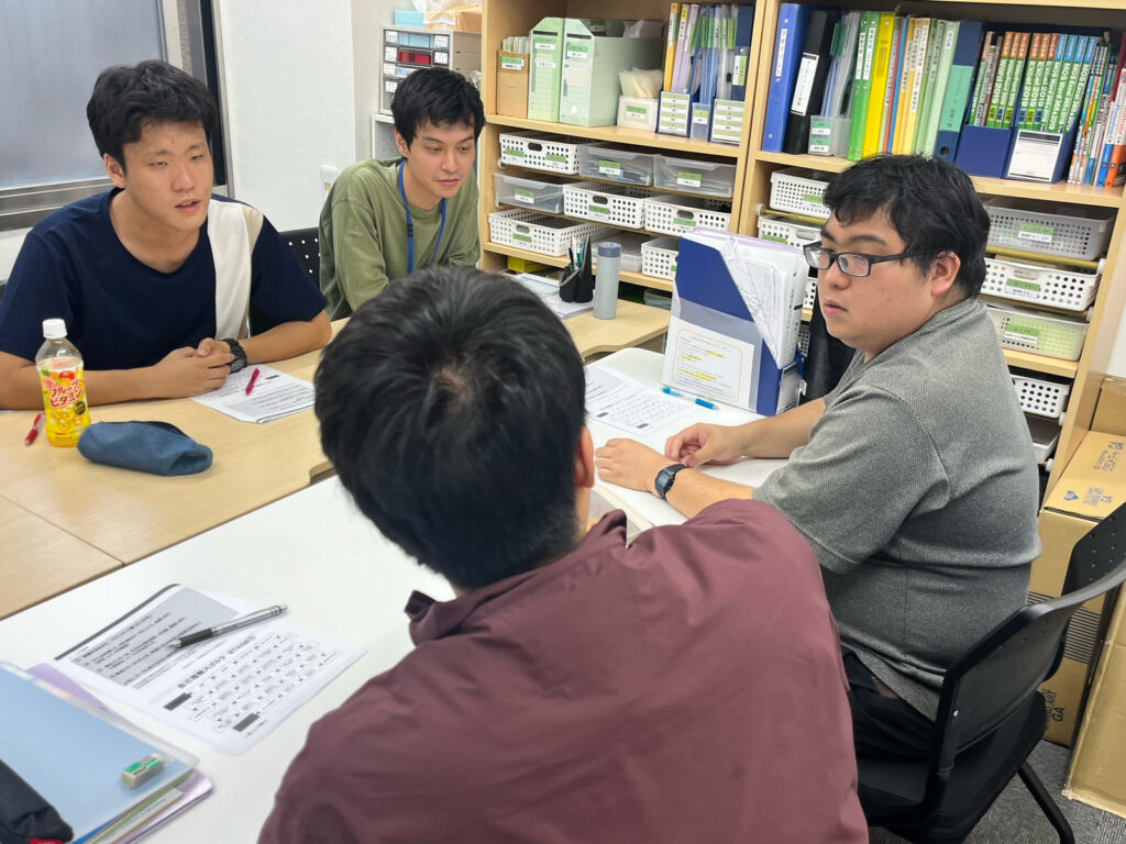 今回は、就労移行プログラムの一環として行われたグループワークの様子をご紹介。このグループワークのプログラムは、話すのが苦手な方でも安心して参加できるよう、他の方の意見を聞くだけの参加も歓迎しています。皆さんのペースに合わせて、無理なく取り組める環境になるようスタッフもお声がけしていきます。