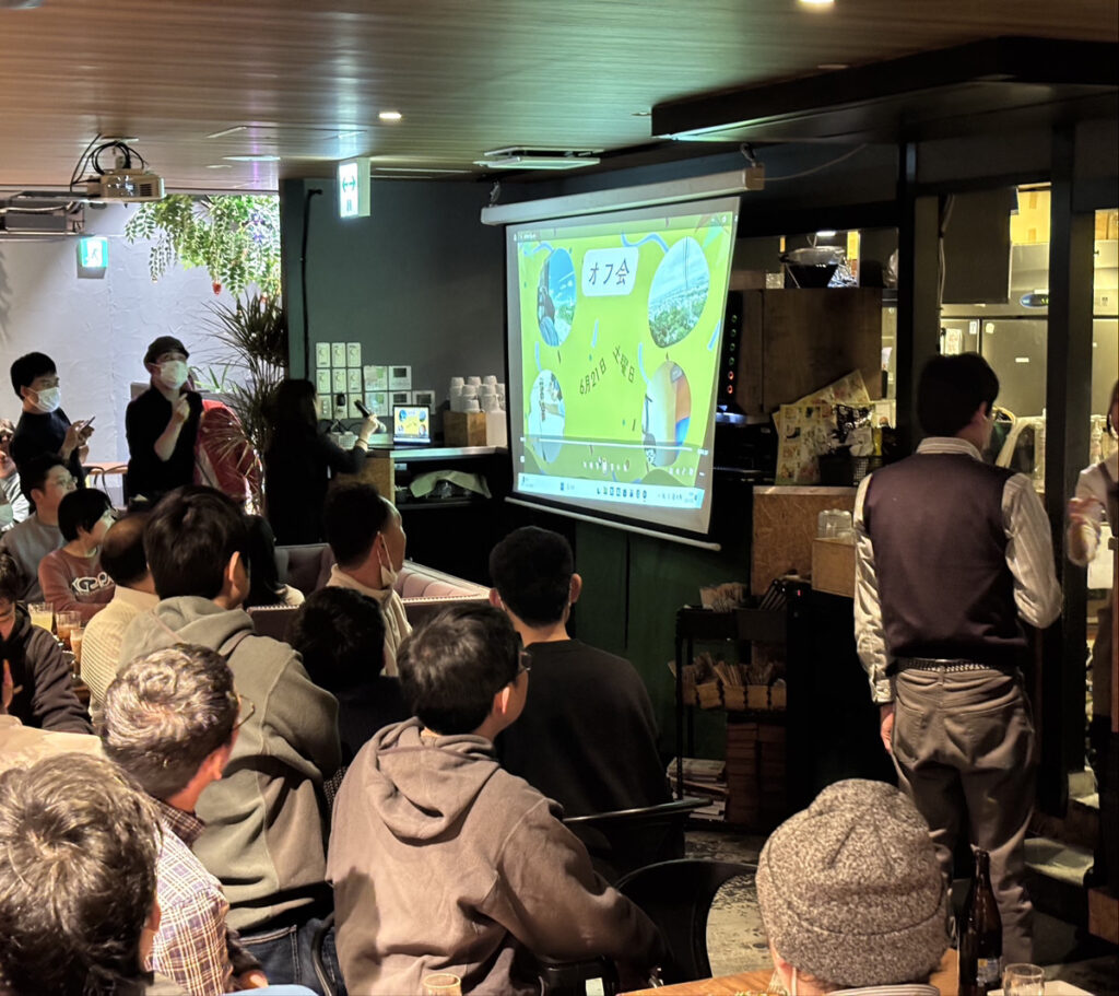 今年の忘年会は、今年度開催したオフ会やOB旅行の写真スライドショーで振り返りました。そして最後は恒例のビンゴ大会。皆さん数字の発表に一気一憂しながら楽しい忘年会はあっという間に終わりの時間を迎えました。皆さんの笑顔で2025年も締めくくれました。