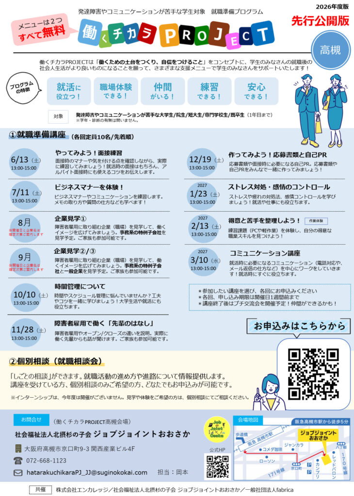 働くチカラPROJECTとは、発達障害やコミュニケーションが苦手な大学生さんに向けて行っている就活準備サポートプログラムです。