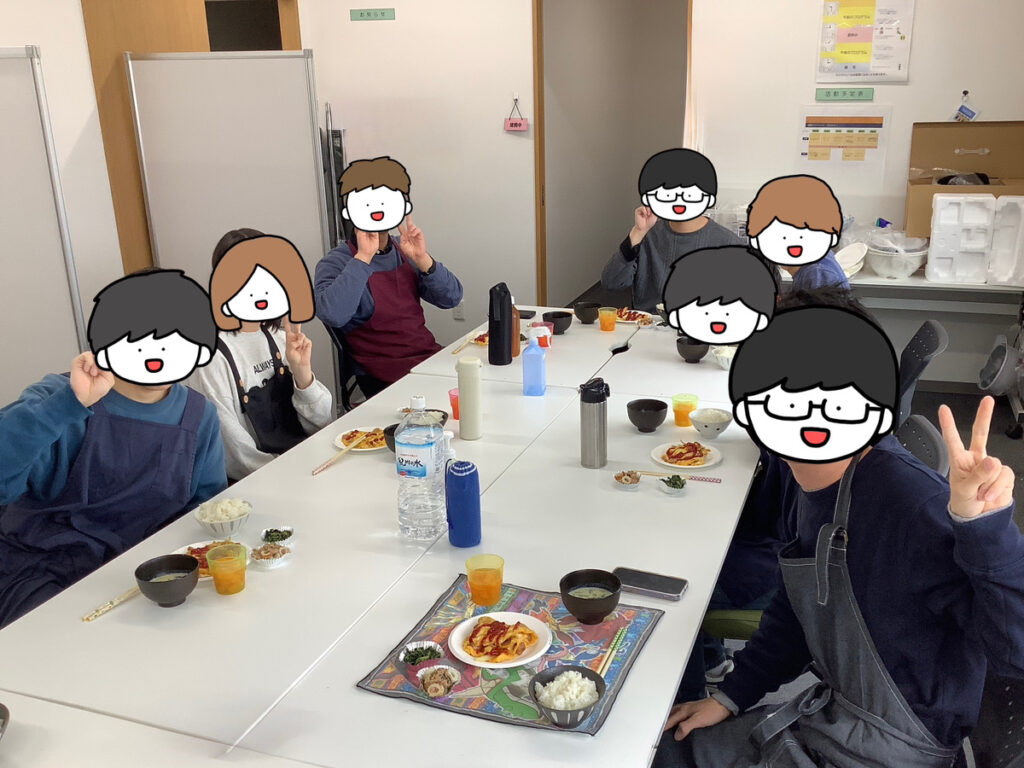 自立訓練(チャレンジコース)の「ライフスキル倶楽部」では、1〜2ヶ月に一度のペースで調理実習を行っています。